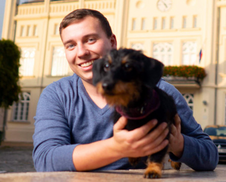 "Nur um zu reisen, würde ich mich von meiner Familie und meinen Freunden trennen - um danach gleich in die Idylle von Bützow zurückzukommen. Mein Hund Fanny ist die reine Lebensfreude. Mit ihr zu spielen macht mir fast genauso viel Spaß wie Technik. Deshalb ist der Beruf des Anlagenmechanikers SHK auch genau der richtige für mich. Dass ich mit effizienteren Anlagen auch was für die Umwelt tun kann, ist ein schöner Nebeneffekt für mich."